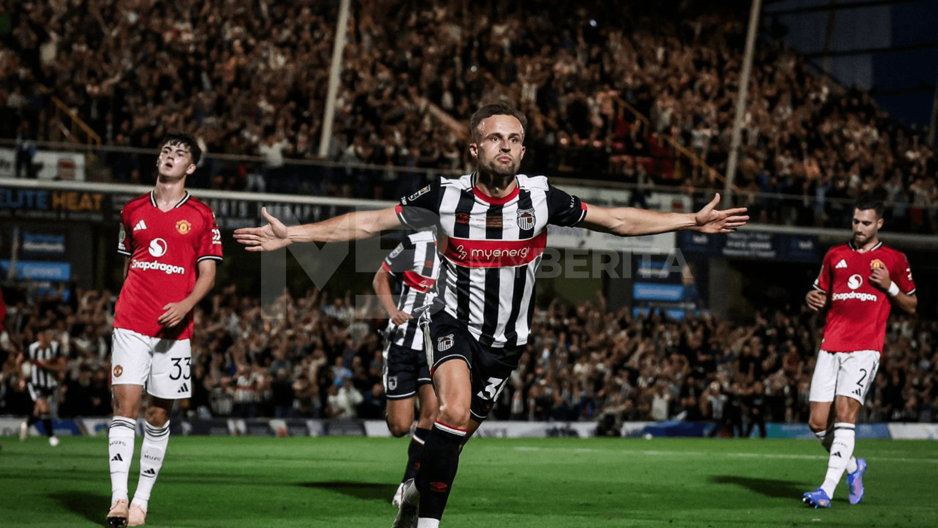 Dalam aksi di Blundell Park yang disaksikan lebih 9,000 penyokong tuan rumah, United ketinggalan 0-2 hasil jaringan Charles Vernam dan Tyrell Warren sebelum bangkit lewat menerusi Bryan Mbeumo dan tandukan Harry Maguire pada minit akhir untuk mengikat perlawanan 2-2.