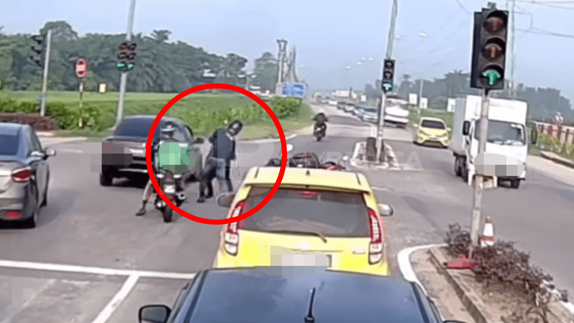Kejadian itu tular menerusi rakaman video berdurasi lebih seminit yang memaparkan pertengkaran berlaku ketika lampu isyarat merah, sebelum seorang penunggang dilihat memukul topi keledar rakannya.