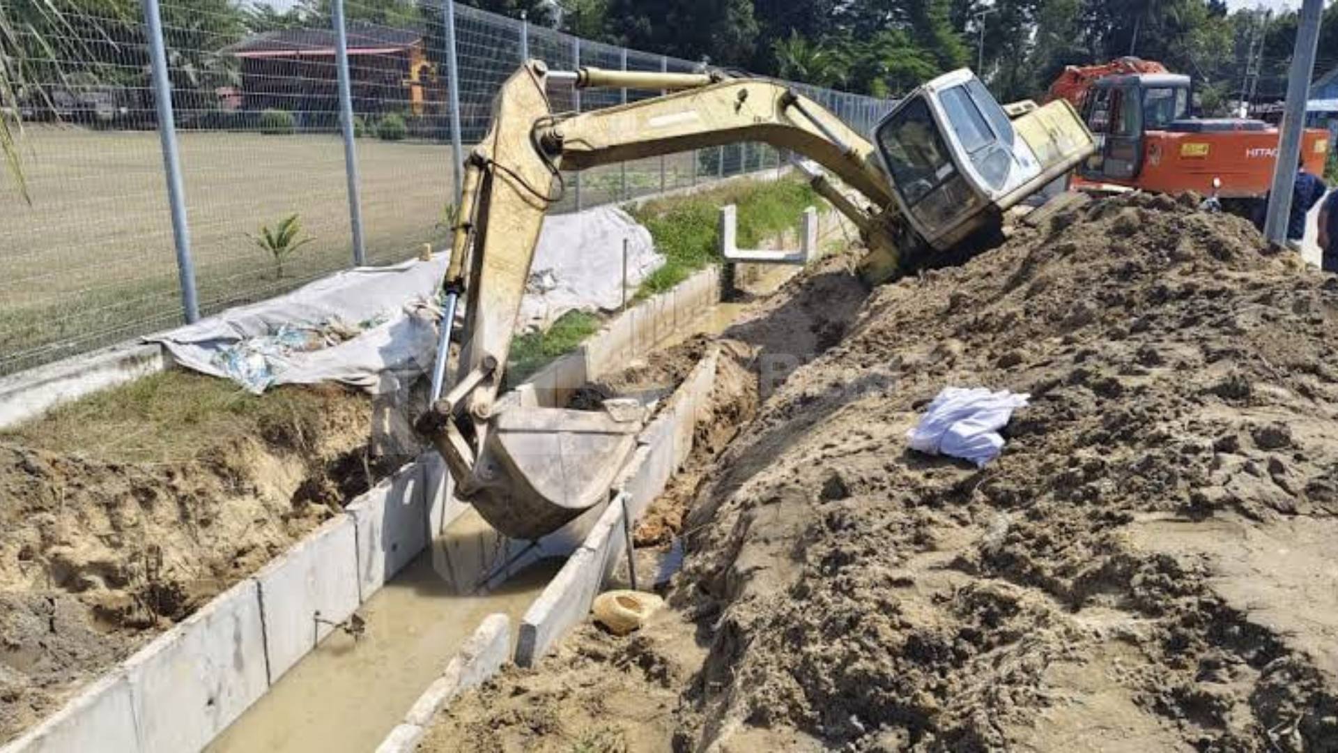 TUMPAT – Seorang buruh maut selepas ditindih bahagian pengorek besi jengkaut ketika menjalankan kerja memasang longkang di jalan Pantai Geting, Pengkalan Kubor, di sini, semalam.