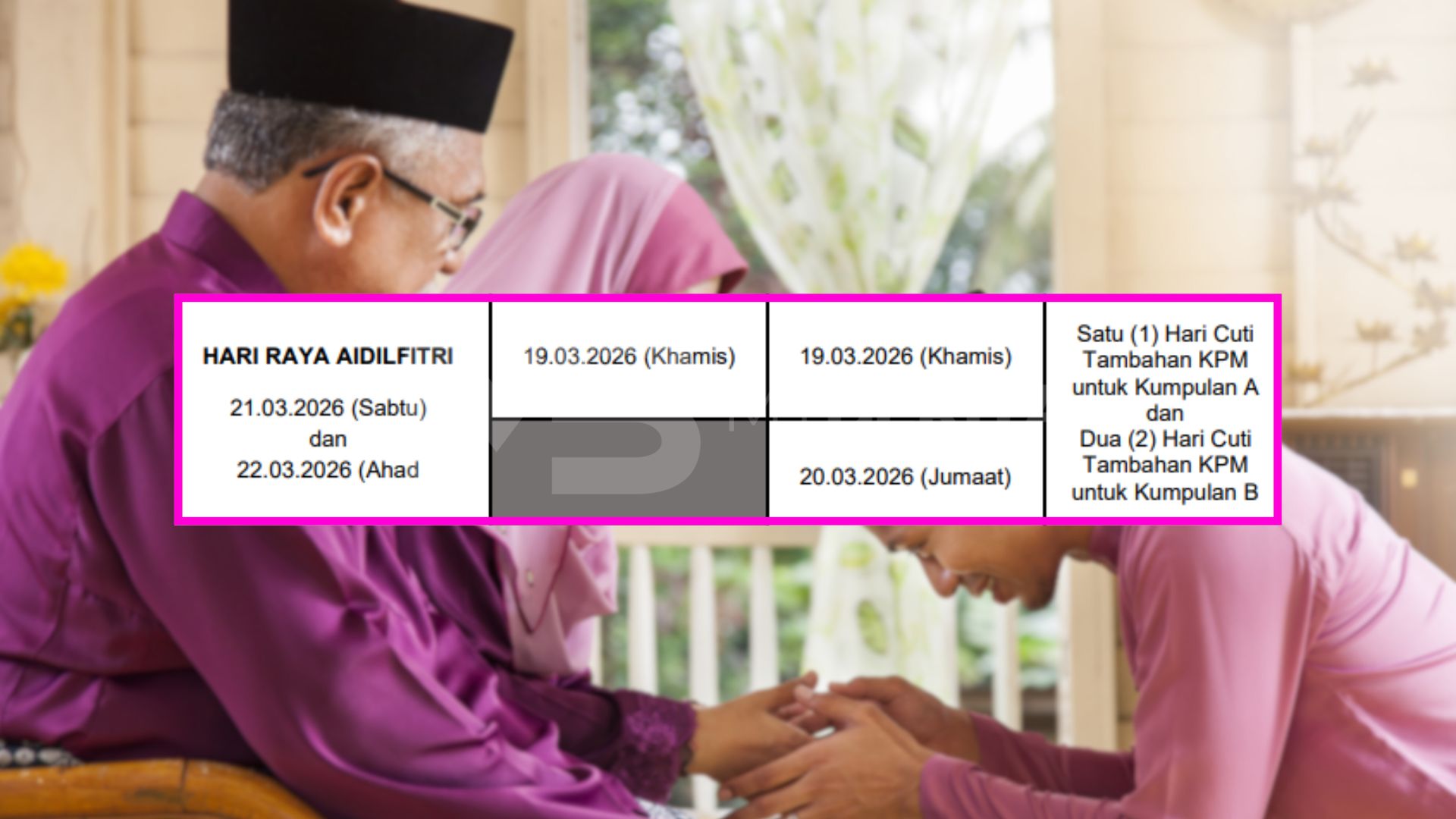 Lebih menggembirakan, cuti perayaan Aidilfitri turut bertepatan dengan Cuti Penggal 1, sekali gus memberikan tempoh rehat lebih panjang. Kumpulan A bercuti selama sembilan hari dari 20 hingga 28 Mac, manakala Kumpulan B bercuti dari 21 hingga 29 Mac.