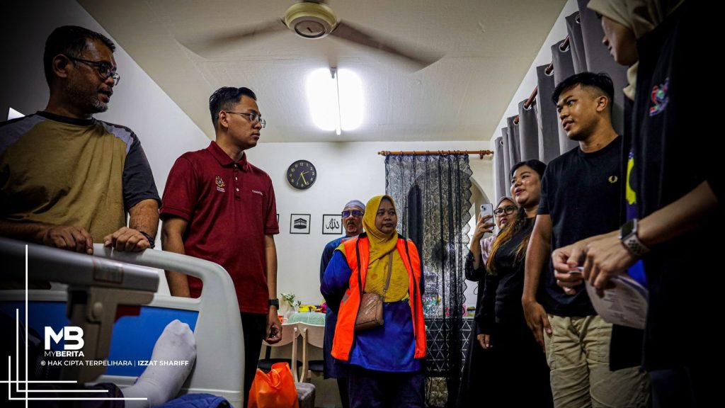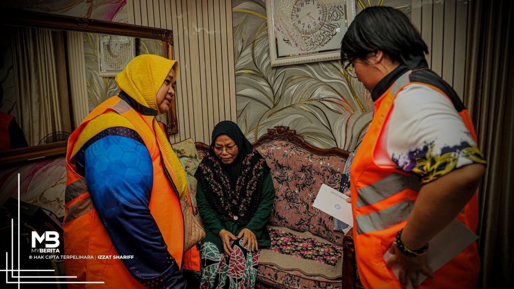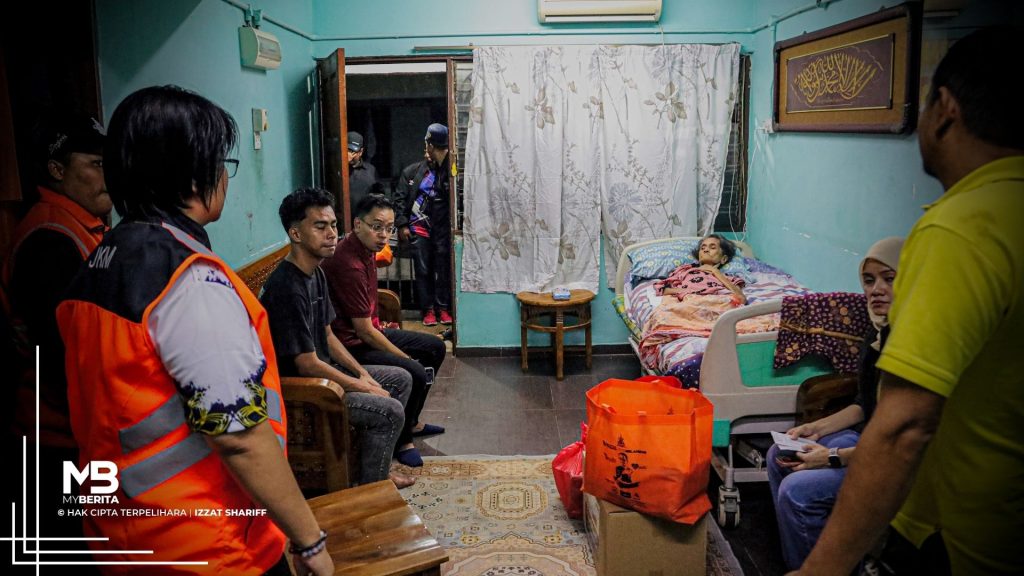 Pegawai JKM menyantuni seorang penerima bantuan yang sedang sakit ketika sesi ziarah kebajikan dalam Program Kembara dan Singgah Sahur.