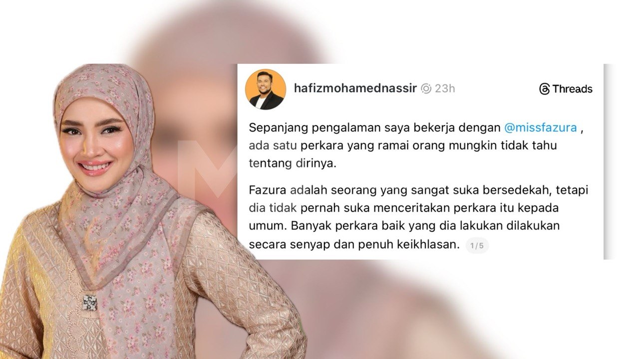 Menerusi hantaran di Threads, individu dikenali sebagai Hafiz Mohamed Nassir berkongsi pengalamannya bekerja bersama Fazura yang disifatkan sebagai seorang yang pemurah dan gemar bersedekah secara senyap.