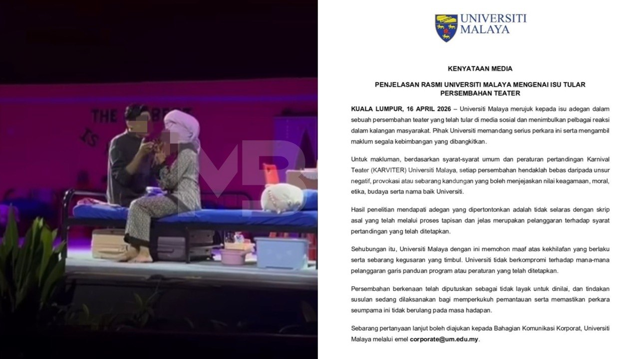 KUALA LUMPUR – Universiti Malaya (UM) memandang serius isu tular membabitkan persembahan teater yang didakwa tidak sopan dalam satu pertandingan anjurannya baru-baru ini.