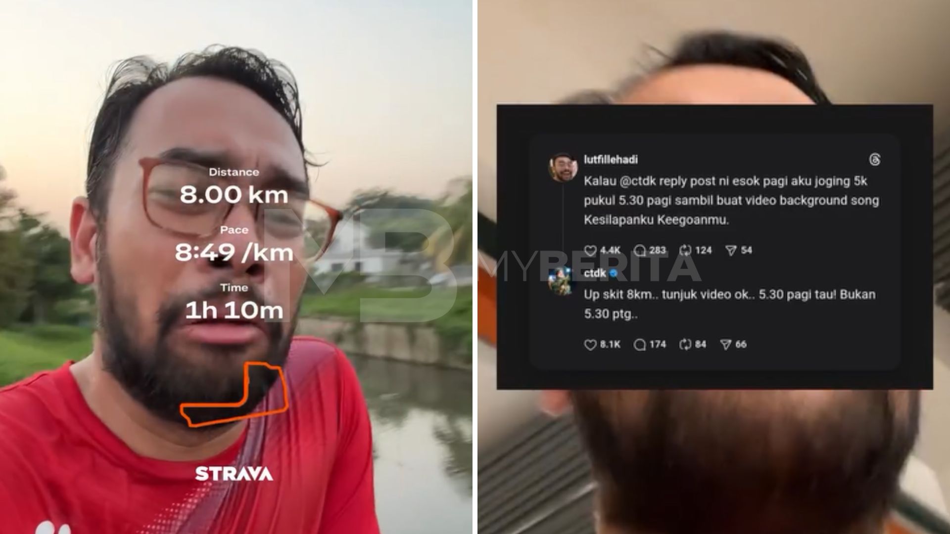 “Sekarang pukul 5.30 pagi tepat, tak percaya yang TokTi suruh aku lari 8km. Ikutkan aku sampai 5km sahaja,” katanya.